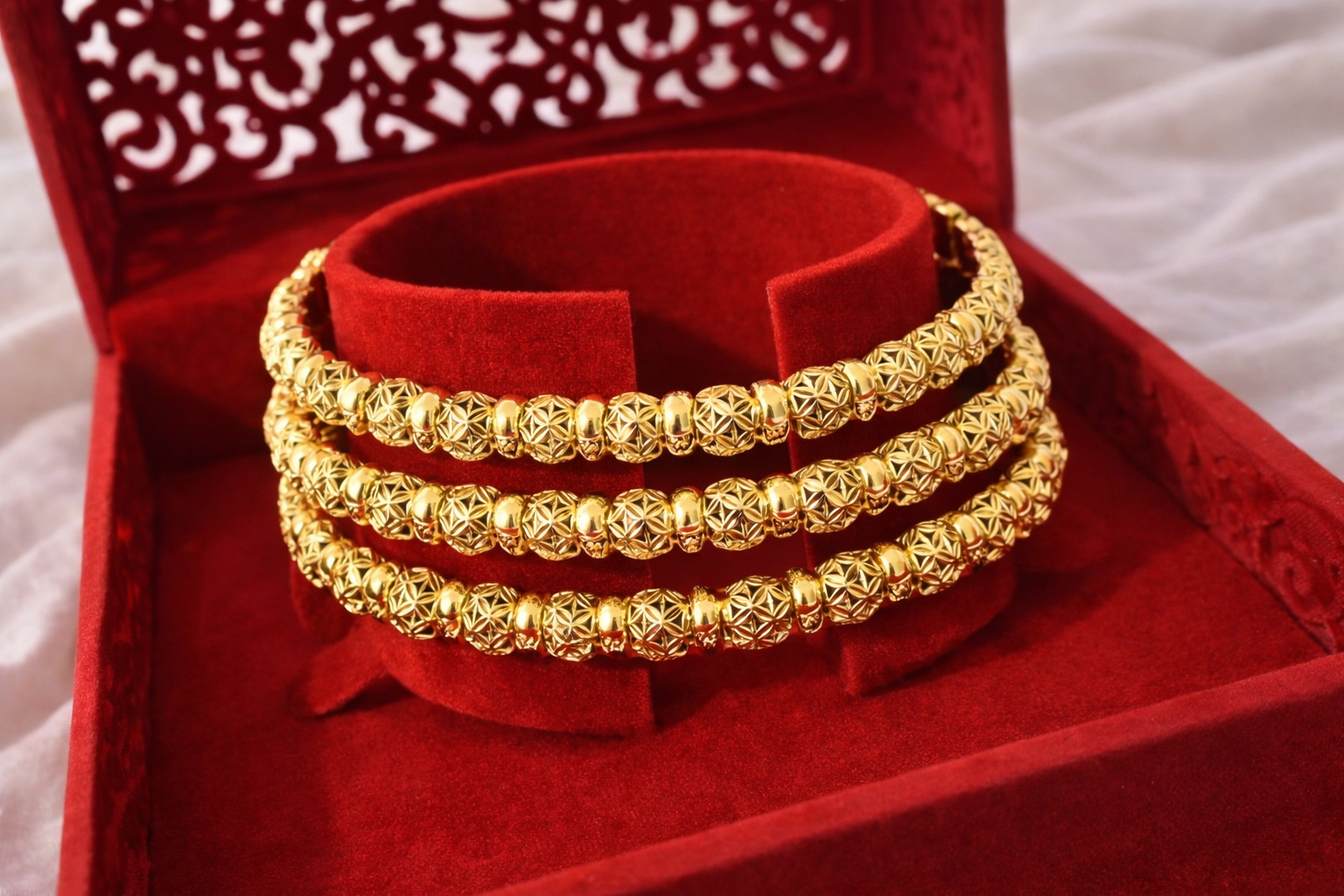 Sublimez votre poignet avec ce trio de bracelets dorés au design raffiné et intemporel.