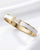 Bracelet élégant en acier inoxydable premium, inspiré du design iconique en forme de H, avec une finition dorée luxueuse et des incrustations blanc nacré raffinées.