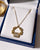 عقد ذهبي أنيق، مزين بدائرة تصميمها فني وجريء، تتوسطها لمسات براقة من الكريستال. قطعة فريدة تضيف لمسة من الفخامة والثقة لإطلالتك اليومية أو المسائية