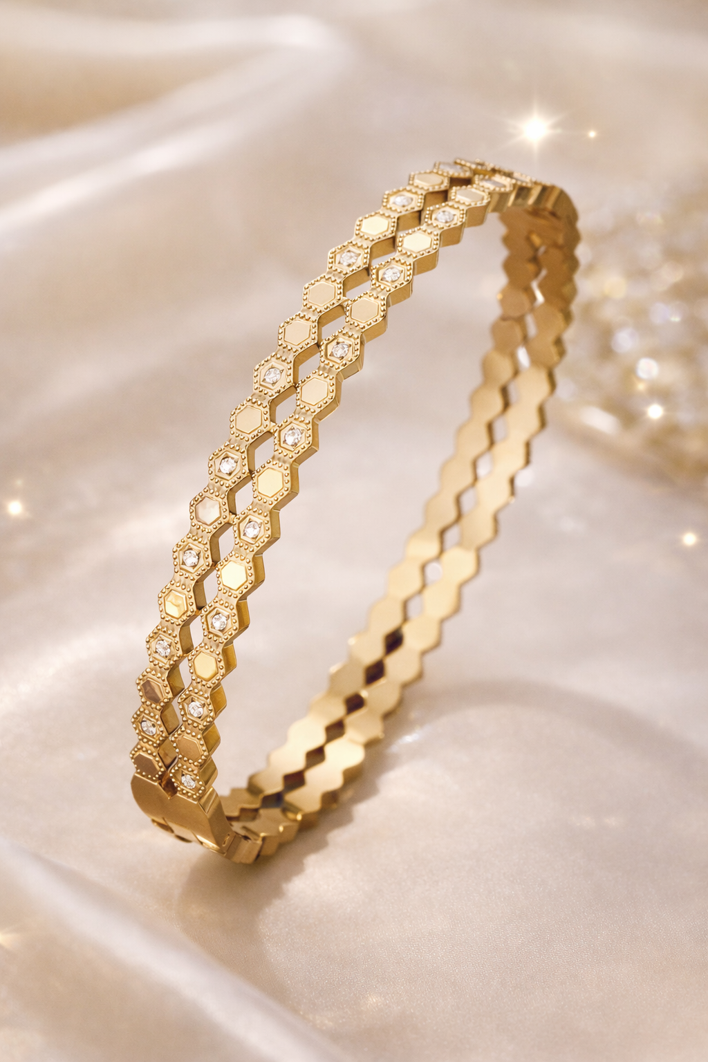 Découvrez notre collection exclusive conçue pour la femme moderne qui ne veut plus choisir entre style et durabilité. Chaque pièce, qu'il s'agisse de nos bracelets joncs ciselés ou de nos colliers aux motifs floraux, est une célébration de la finesse et de la résistance.