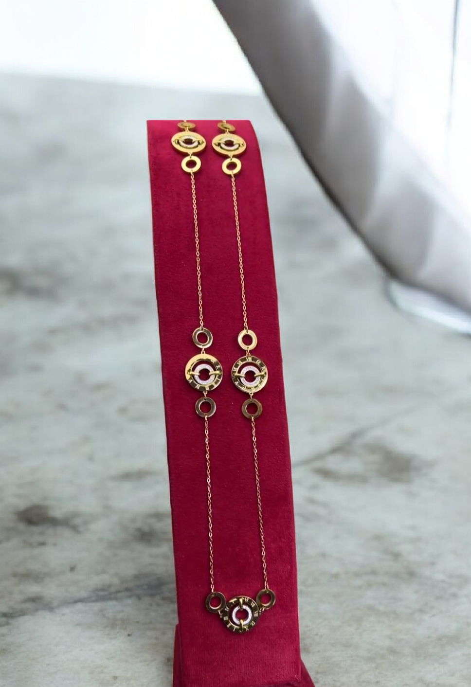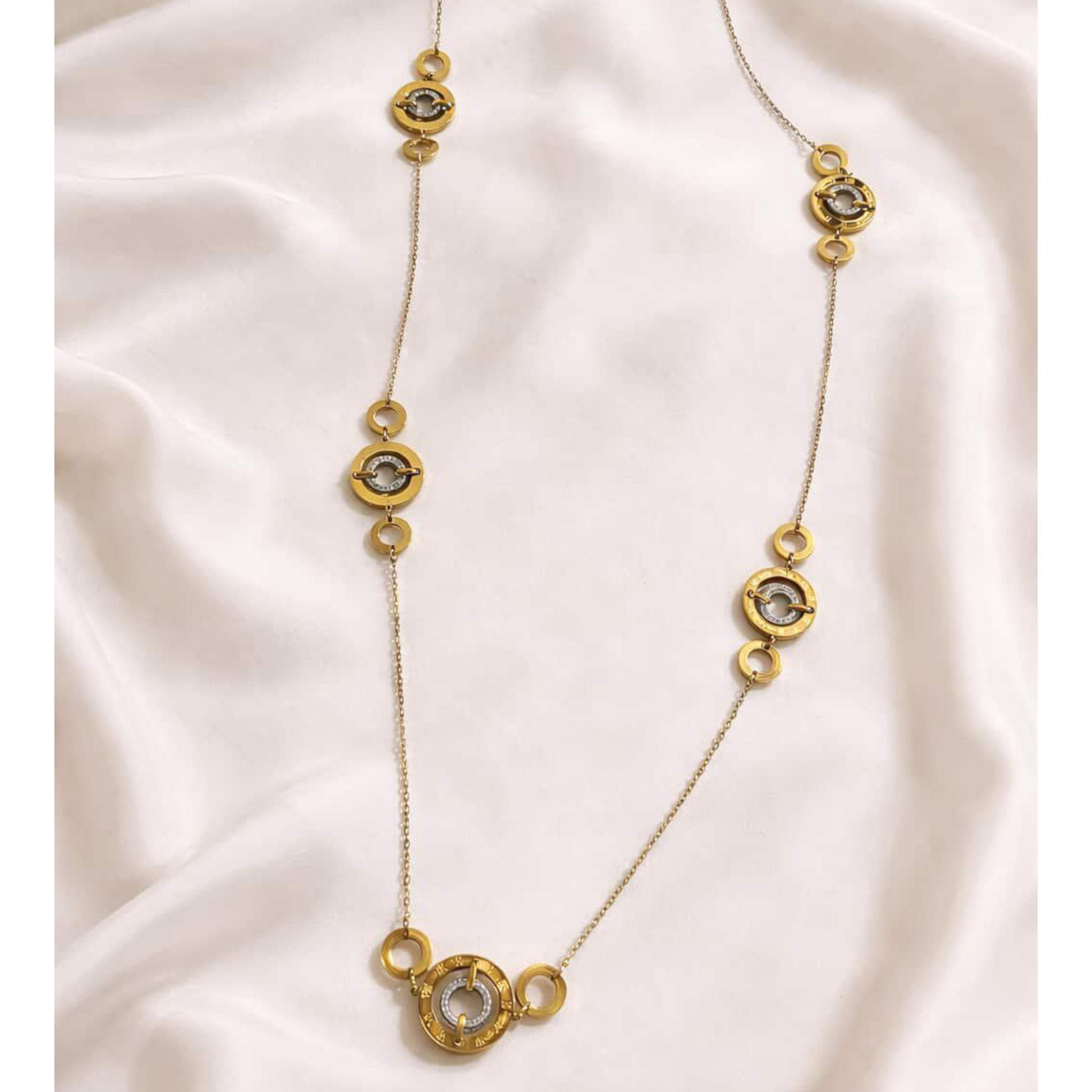 Sautoir raffiné en acier inoxydable de haute qualité, finition dorée brillante, résistant à l’eau et à l’oxydation. Son design moderne composé d’anneaux circulaires apporte une touche chic et intemporelle, idéale pour sublimer toutes vos tenues, au quotidien comme lors des occasions spéciales. Léger, élégant et durable, ce bijou allie parfaitement style et confort.